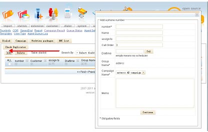 Open login screen, enter the correct user name and password to submit into the management interface. Choose “dial list”, create a new campaign, click to campaign and then select the “Add” button. Pop-up a list box about add campaign, according to your demands to fill the information completely.