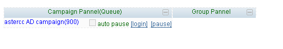 Log in the system page, enter the agent interface. Find the campaign pannel(Queue ) below the campaign corresponding to the queue number, and the two options, login, pause.